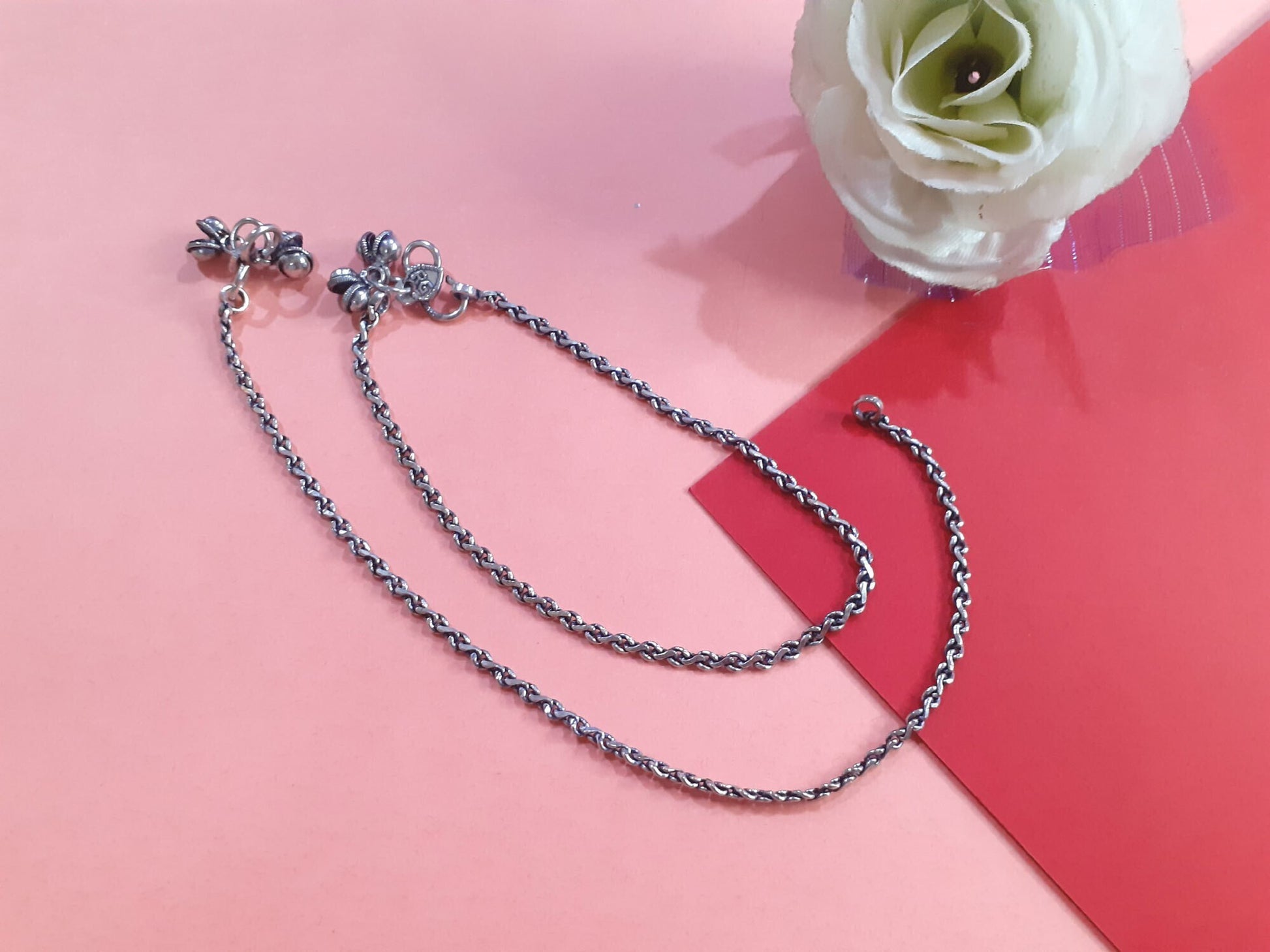Silver Brass Contemporary S-Hook Anklet For Women (Skin Safe)