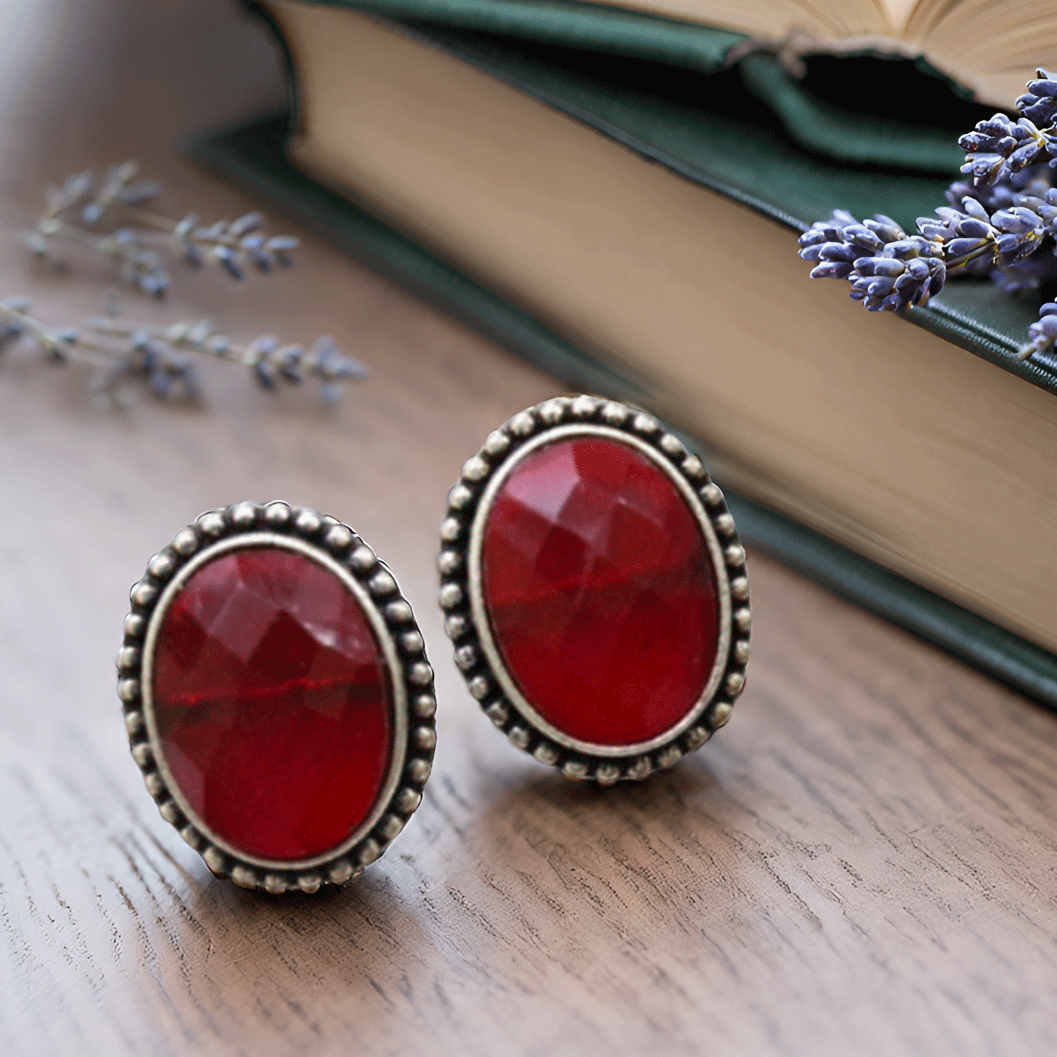 Black Oval Stone Stud Earrings – Oxidised Finish Classic Earrings