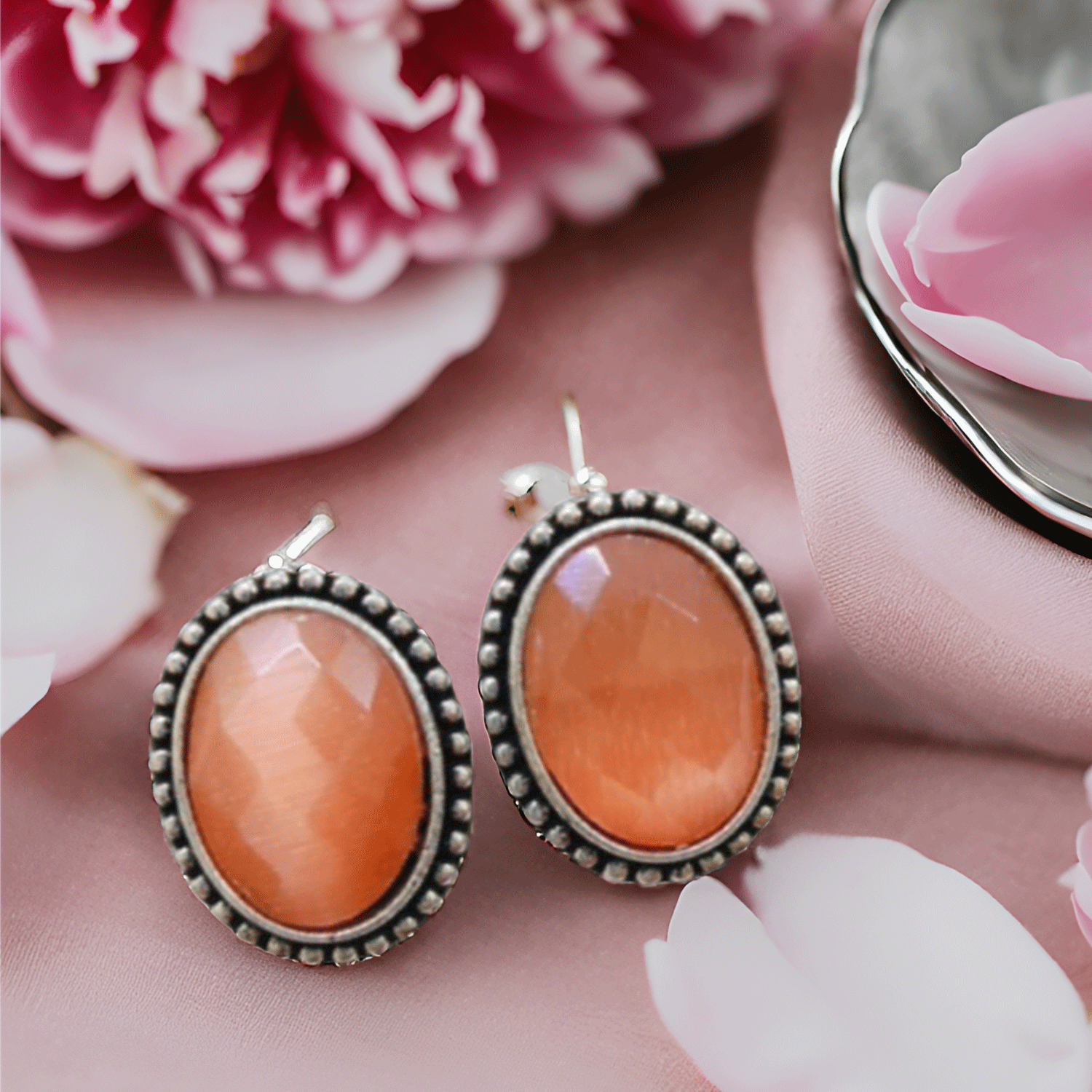 Add timeless elegance to your jewellery collection with these black oval stone stud earrings. Featuring a faceted black stone set in an oxidised silver-tone frame with delicate beaded detailing, these earrings offer a perfect blend of classic charm and modern simplicity.