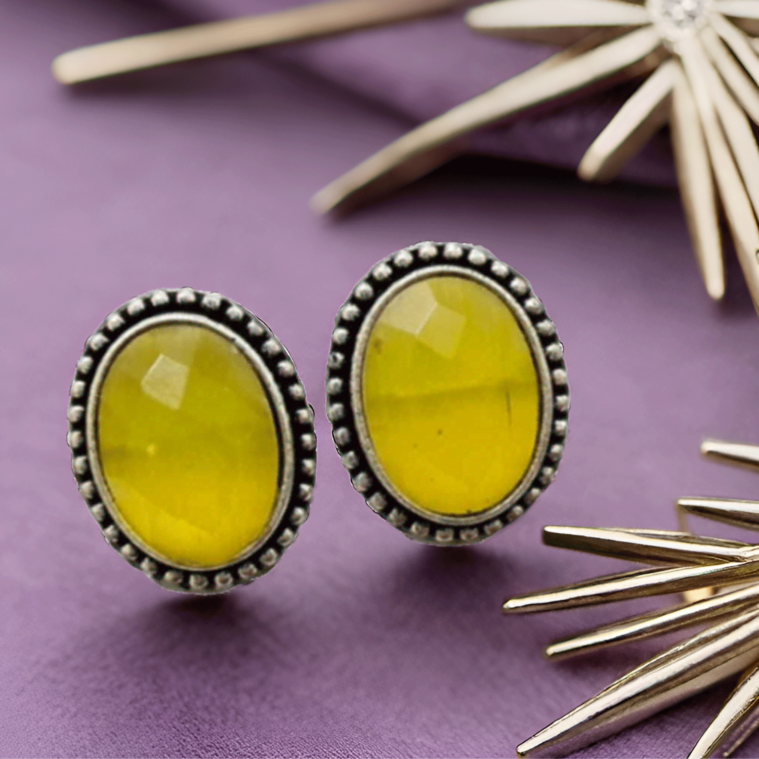 View compareBlack Oval Stone Stud Earrings – Oxidised Finish Classic Earrings