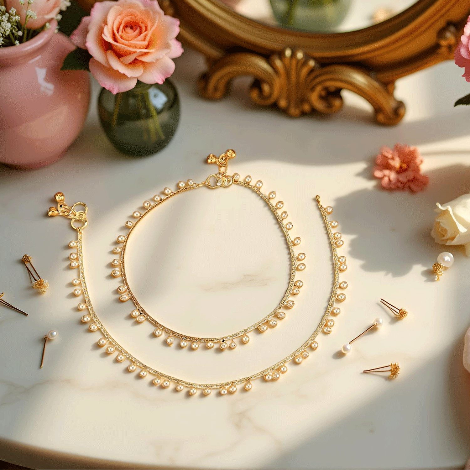 Gold & White Alloy Contemporary S-Hook Anklet For Women (Skin Safe)