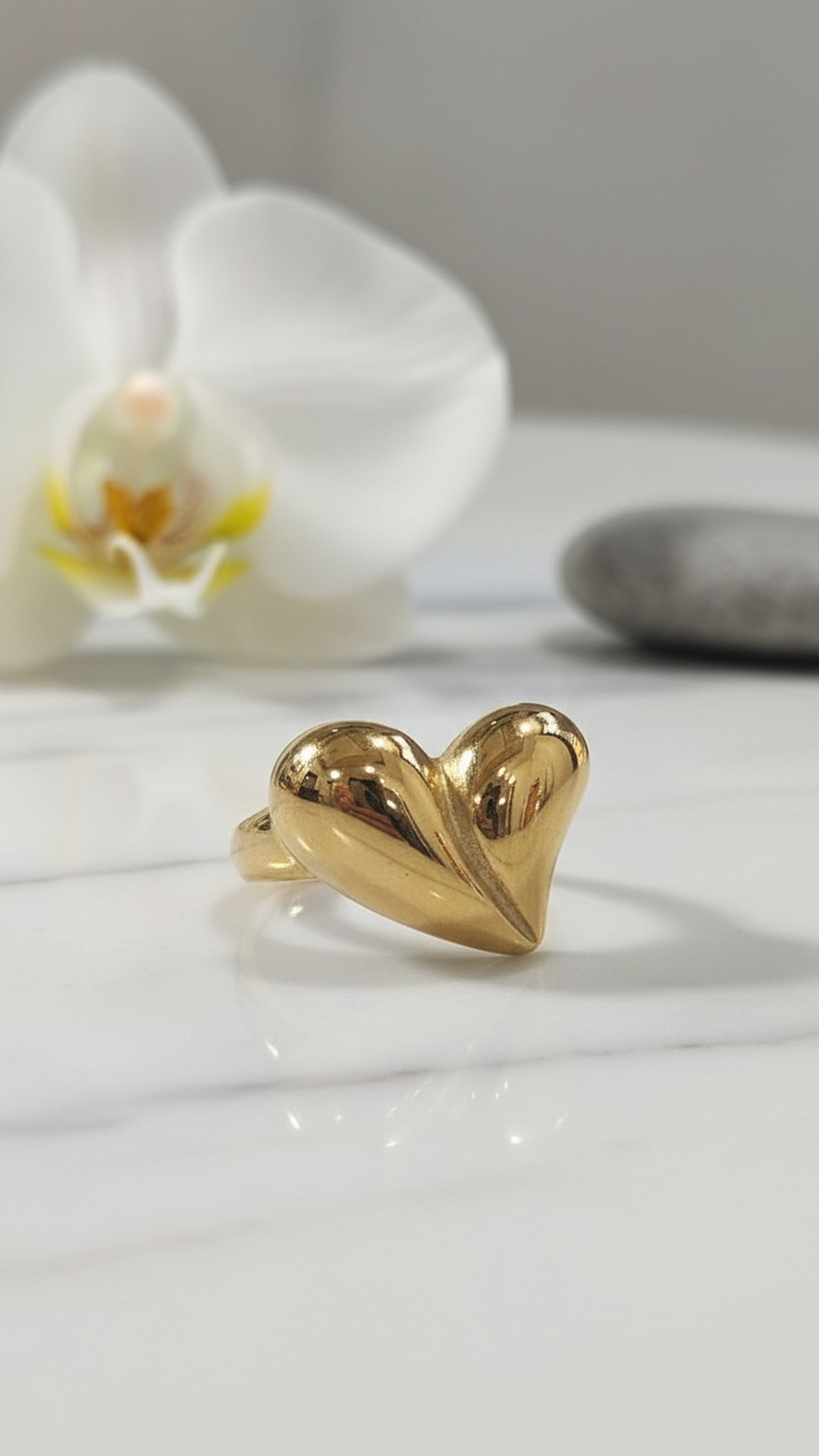 Fall in love with timeless elegance. Our Golden Heart Statement Ring features a bold, sculpted heart design with a smooth high-polish finish that reflects light beautifully. Designed to make a statement while staying classy, this piece adds a romantic yet modern touch to any outfit.