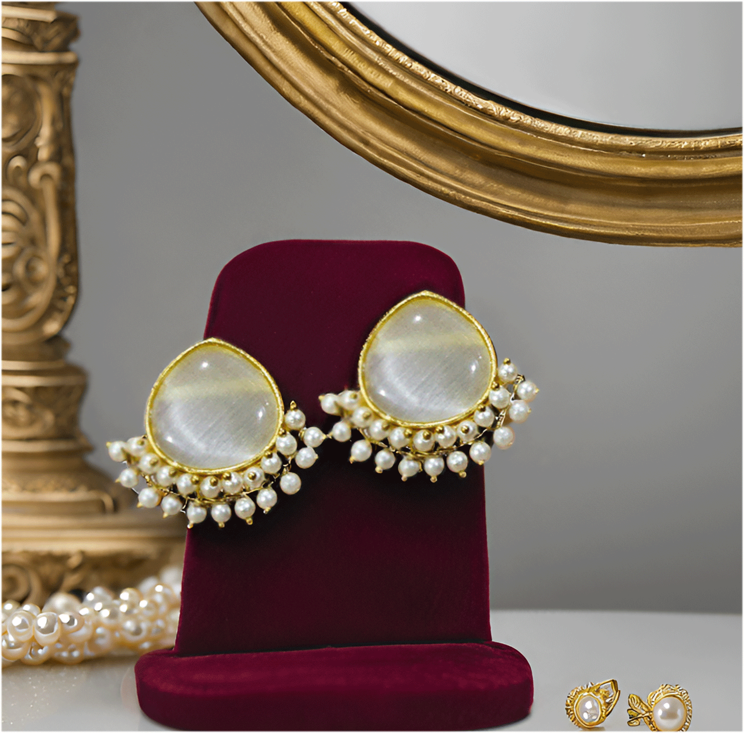 Pearl Drop Stud Earrings – Elegant Gold-Tone Ethnic Earrings