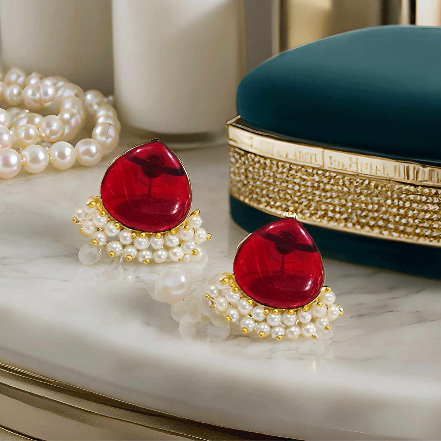 Design: Teardrop stone with pearl cluster detailing