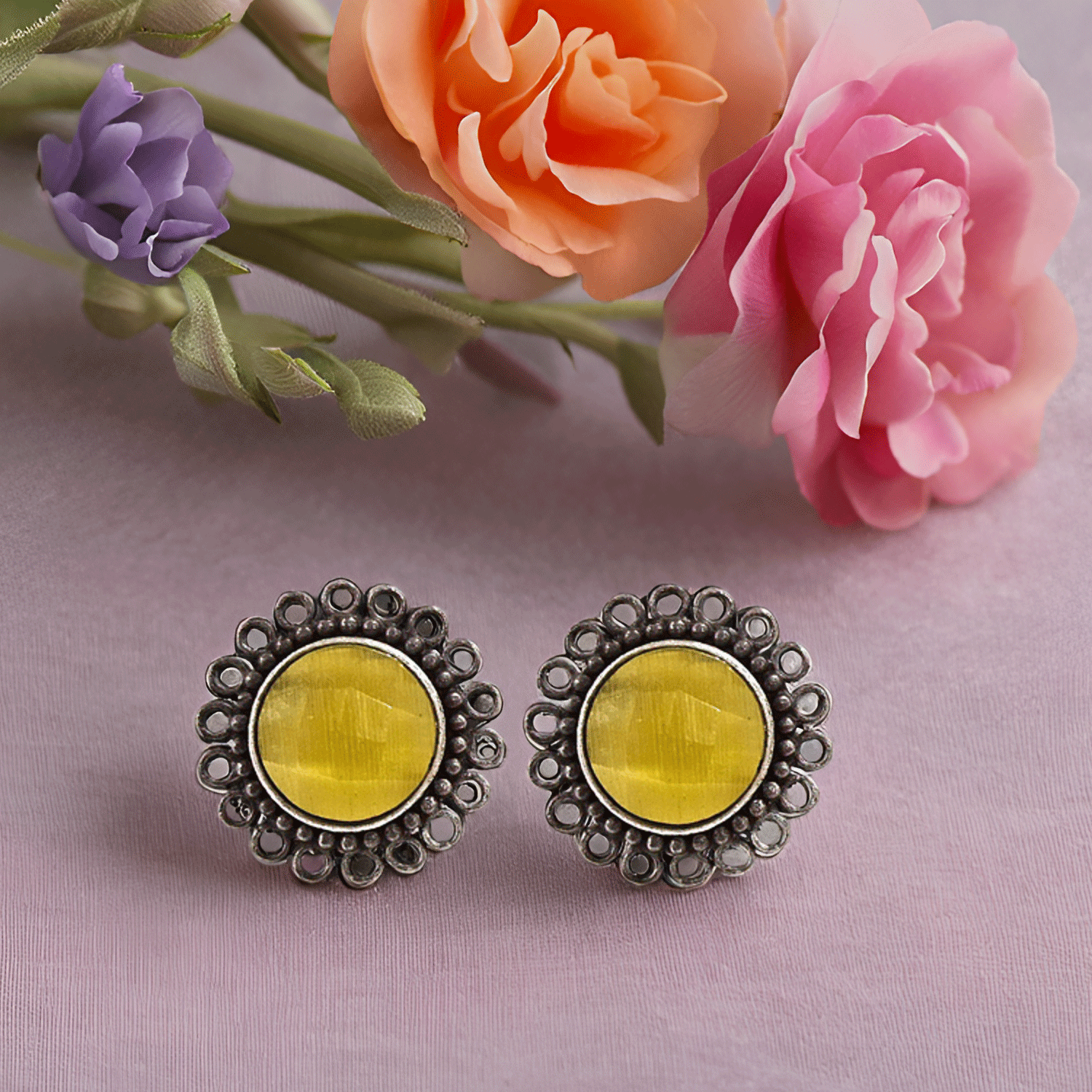 View compareYellow Stone Oxidised Silver Stud Earrings – Floral Border Design